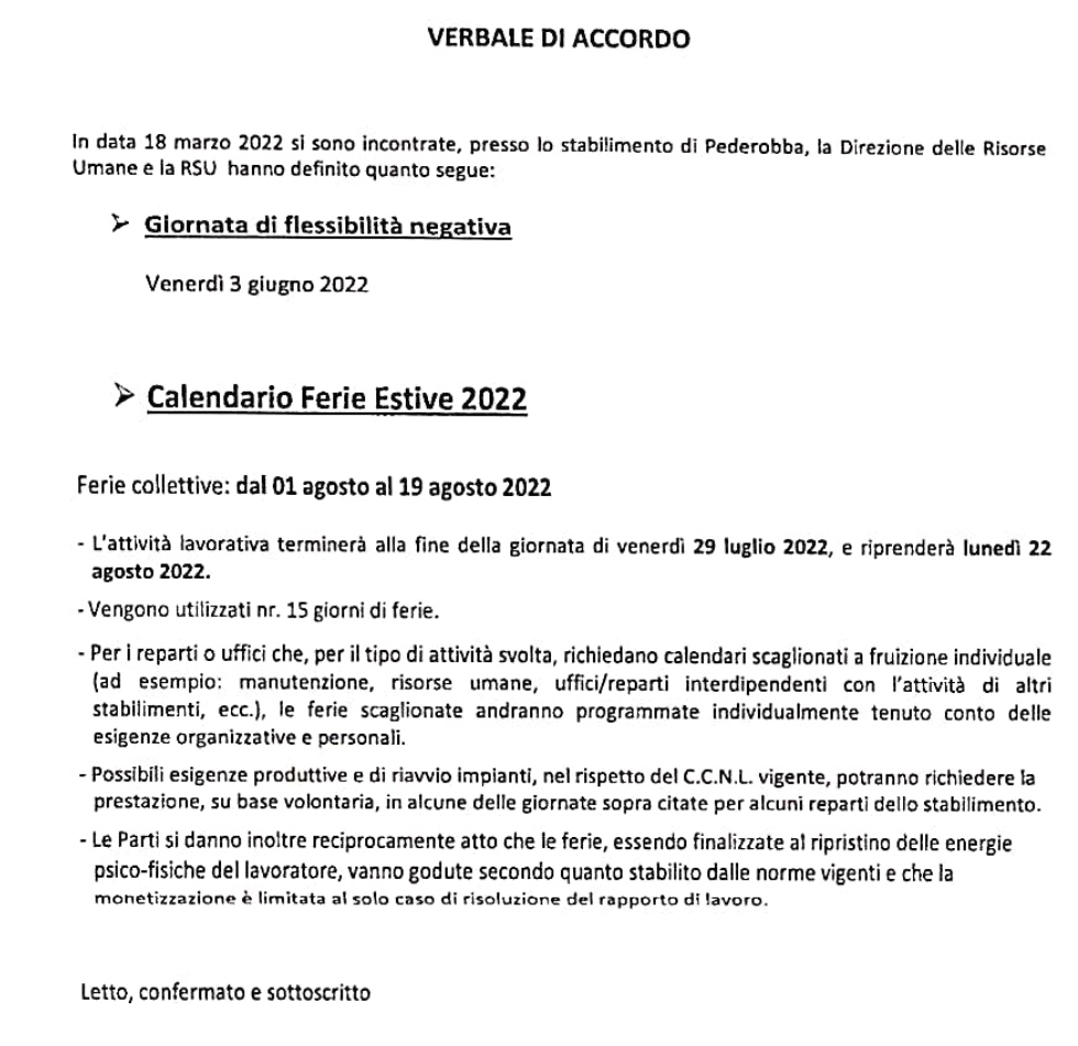 Calendario Ferie Invernali 2025 Stabilimento di Pederobba: Ultimo giorno di lavoro il: Venerdì 19 dicembre 2025 Rientro al lavoro il: Mercol...